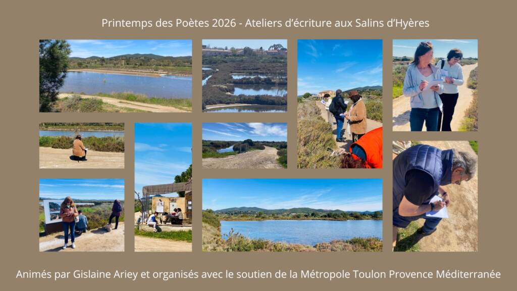 Dans le cadre du Printemps des Poètes 2026, Gislaine Ariey vous convie à deux ateliers au cœur des Salins d’Hyères.